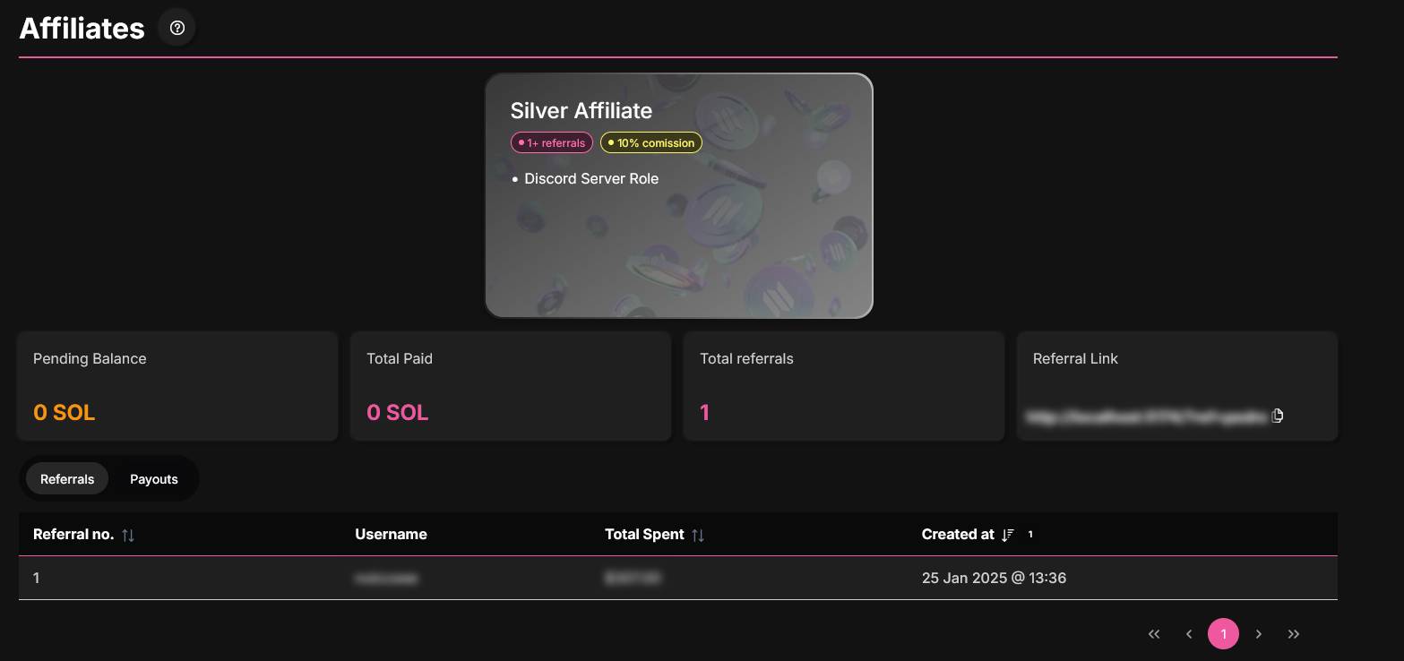 Once you register for an account you will have access to our dedicated Affiliates area so you can keep track of your traffic. We pay your affiliate earnings to the Solana account you registered with.